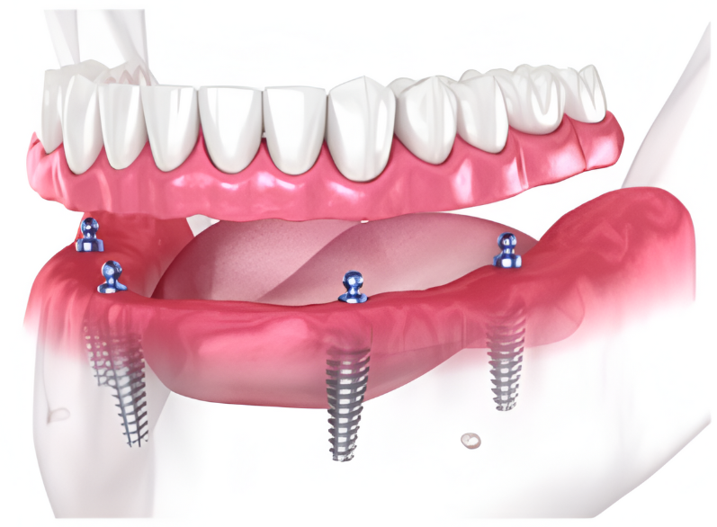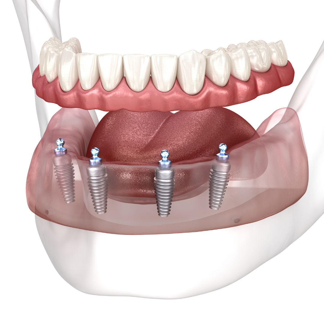 Includes surgical placement of 4 implants.